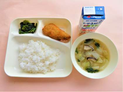 ご飯・牛乳・たらフライ・うすくず汁・ほうれんそうのおひたし