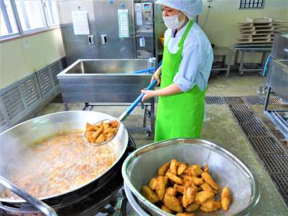 たらフライはカリッとした衣とふわっとした身が好評で、おかわりの行列ができていました。
