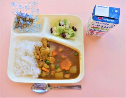 今日の給食は、毎回大好評なカレーライスでした。