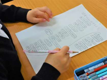 「給食のじゅんびをしよう」をプログラムさせるには、どのような指示をどのような順で組むと良いか考えていました。