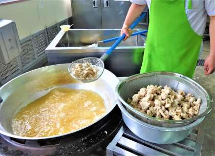 今日は、給食の人気メニュートップ3に入る「鶏肉のからあげ」が出ました。