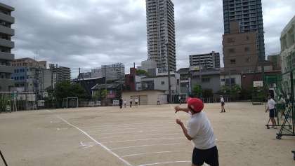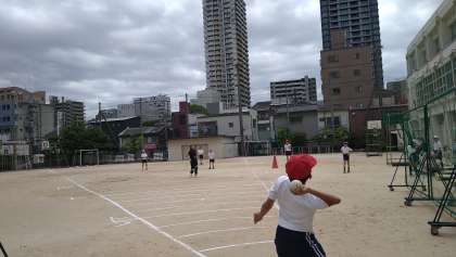 さすがは6年生です。投げるフォームがしっかりとしていて、遠くまでボールを投げることができていました。50メートル近くまで投げた児童には「おお〜!」という歓声があがっていました。