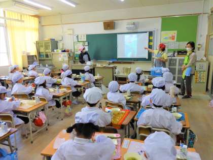1年生はちまきを初めて食べる児童がほとんどでしたが、ちまきの笹の葉のむき方の動画を見ながら皆上手に食べることができていました。