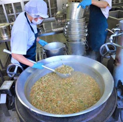 かやくご飯・みそ汁・まっちゃういろう・牛乳