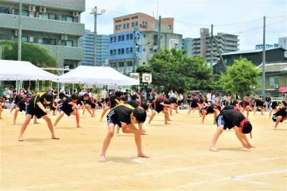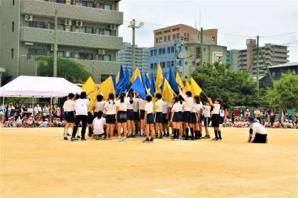 閉会式の時、全力を出し切り晴れ晴れとした表情で整列した児童の姿が印象的でした。