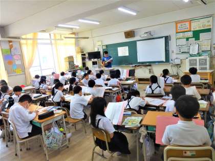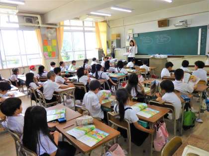 2年生は5時間目の音楽で、楽しそうににこにこ笑顔で歌っていました。