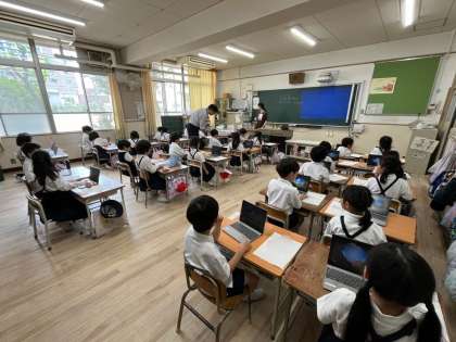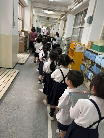 1年生は、今日初めて学習者用端末を使いました。