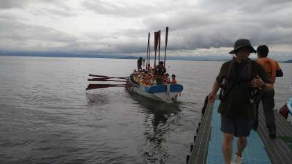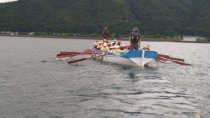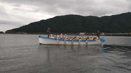 息を合わせて、みんなで協力して漕ぎますグングン進んで行きました。