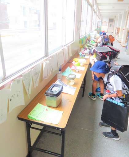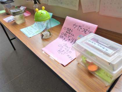 子ども達や先生が、生活科の学習で学校や家で大切に世話してきた生き物を、全校児童にも見てもらおうという取り組みです。