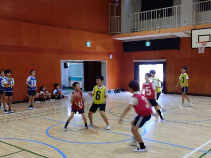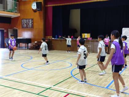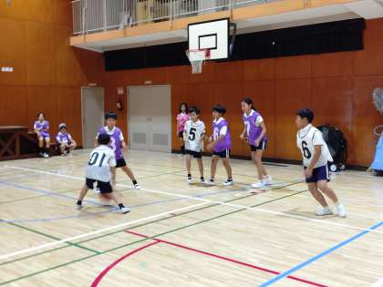 5年生は体育科でバスケットボールの学習をしています。「自分たちのチームの課題は何か」「課題解決のためにはどんな練習が良いのか」を各チームで考え、話し合いながら学習を進めています。試合中はずっと動きっぱなしで運動量が多いですが、みんな全力でプレーしています。