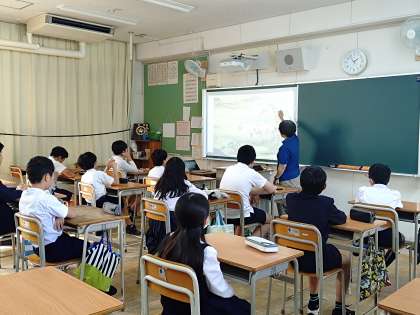 始めは緊張の面持ちだった6年生でしたが、中学校の先生が小学生にもわかりやすい授業を工夫・計画してくださっていたので、次第に中学校の学びに入り込む姿が見られました。