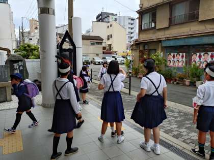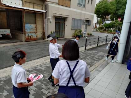 今週は代表委員会の児童があいさつ運動をがんばっています。自分たちで工夫して作ったハロウィン仕様の飾りを身につけ、登校する児童に対して「おはようございます!」と明るくあいさつをしています。みんなで気持ちの良いあいさつができたらいいですね!