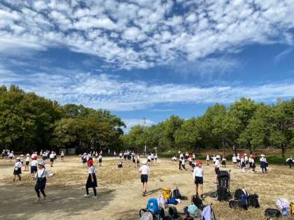 秋晴れの中、2年生と4年生で花博記念公園へ行きました。