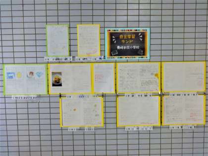 子どもたちが、自ら問いを立て、考えたり調べたりしたことをまとめた「自主学習」の内容を展示しています。