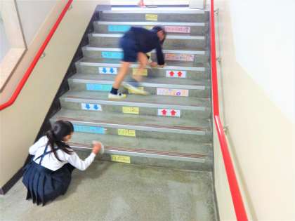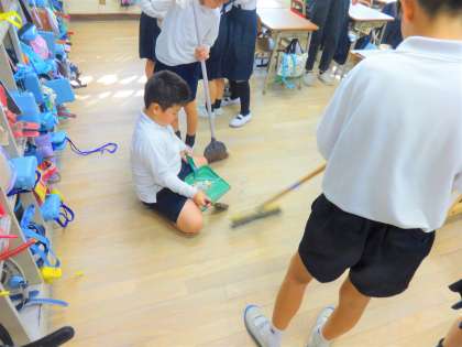 自分たちが使う教室だけでなく、みんなが通る廊下や階段、特別教室も協力してそうじをします。