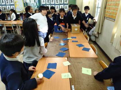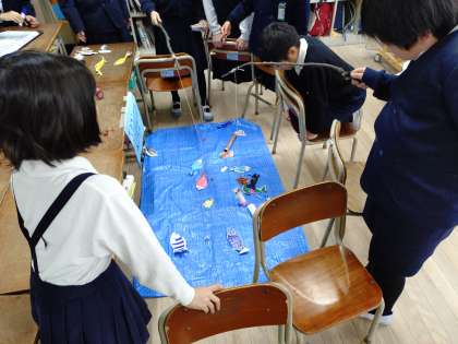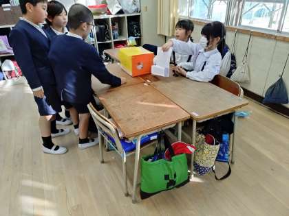 2年生が生活科の学習で作ったおもちゃで遊ぶ「おもちゃ祭り」が12月6日(金)に開かれました。自分たちだけで遊ぶだけではなく、ペア学年でいつもお世話になっている4年生をご招待しました。自分たちが作ったおもちゃで楽しむ4年生の姿を見て、2年生もとてもうれしそうでした。