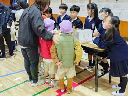 この日のために、準備を進めてきた1年生。すっかりお兄ちゃんお姉ちゃんの顔になって、保育園の子ども達に優しく接していました。