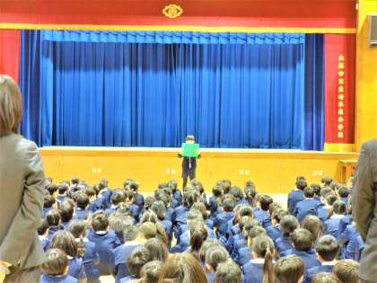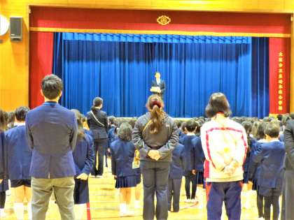 その後、校長先生から「今年は巳年です。蛇は脱皮を繰り返して成長していきます。同じように、私たちも経験や学びを通して自分を成長させることができます。ときには失敗をするときもあるでしょう。それを受け入れることで、さらに一歩前に進むことができます。皆さんも成長できる1年にしましょう。」とお話がありました。