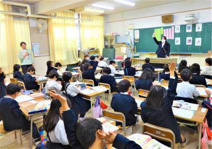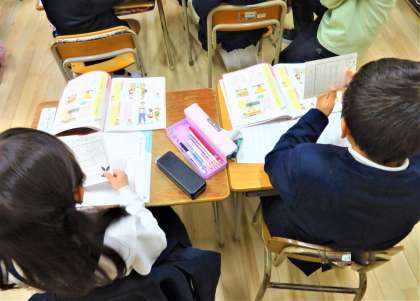 隣の友だちから自分のよいところについて書かれたカードをもらった1年生は、くすぐったいような、少し恥ずかしいような、でもうれしい気持ちになって、大事そうに読んでいました。