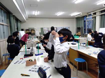 化学クラブでは、紙コップと偏光板を使った手作りの万華鏡を楽しそうに作っていました。