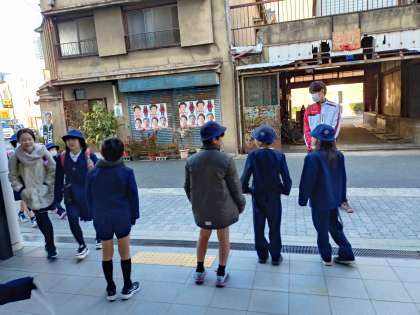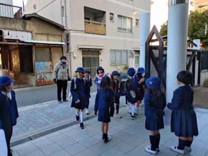 今週はあいさつ週間となっており、2年生と4年生のペア学年が登校時に正門であいさつをしています。