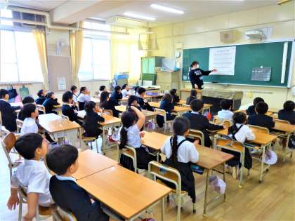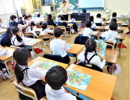 「声をあわせて」「楽しくうたう」と先生と一緒に確認しながら、豊崎本庄小学校の校歌を練習していました。