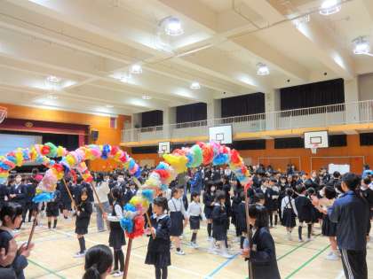 今日の1時間目には、1年生と2〜6年生の対面の「入学おめでとう集会」が行われました。