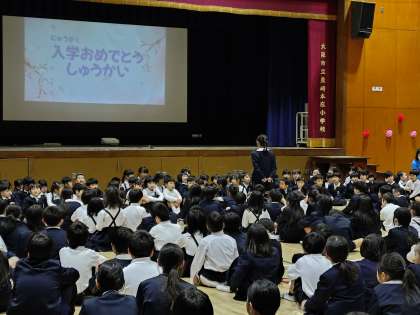 1年生の入学から1週間が経ち、改めて1年生の入学を全校児童で心からお祝いしました。
