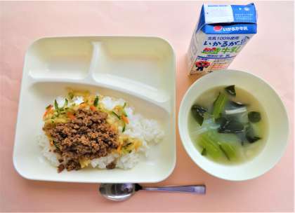 今日の給食は、給食の大人気メニューの一つのビビンバでした。