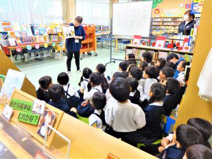 豊崎本庄小学校の図書室には、いろいろなジャンルの本がたくさん並んでいて、木曜日には図書館司書の先生が来てくれています。