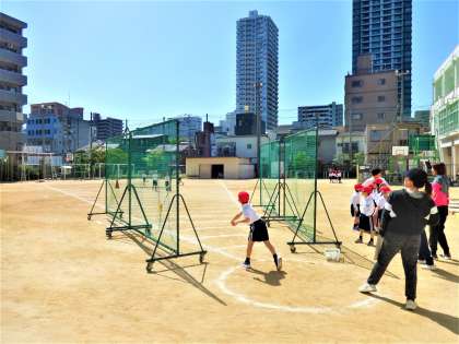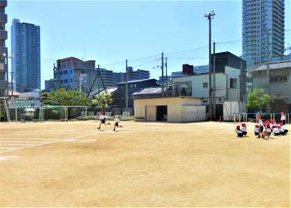 1年生は、運動場で元気いっぱいに体力テストに取り組んでいました。