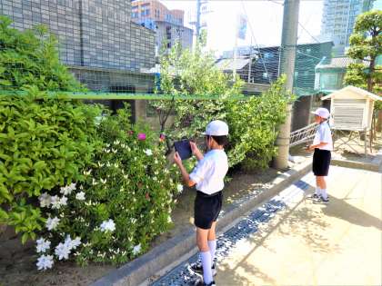 タブレットのカメラ機能を使って写真を撮り、その場で観察しきれなかった情報もあとから教室に返って見返し、じっくりと調べていました。