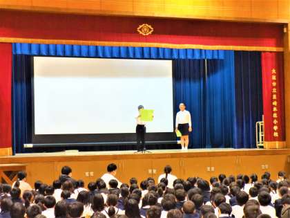 先生や友だちだけでなく、地域の方にもあいさつができていますか、という問いかけに「はい!」とたくさんの手が挙がっていました。