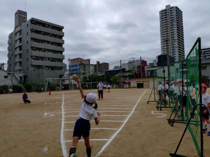 5年生が「50m走」「ソフトボール投げ」の測定をしました。