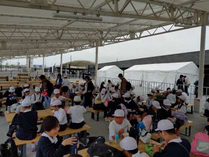 何人かミャクミャクのキャラ弁の児童もました。