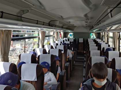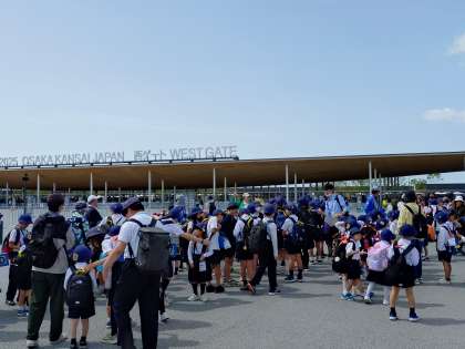 連休明けの、いよいよ待ちに待った1,6年生の春の遠足です。昨日の雨とは打って変わって快晴の中、バスが出発しました。1,6年生がペアで座り,落ち着いて過ごしていました。