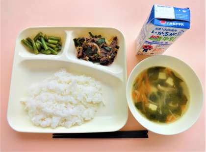 ご飯・牛乳・プルコギ・とうふとわかめのスープ・さんどまめのナムル