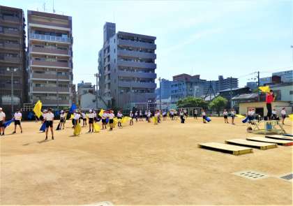 6年生は憧れのフラッグを手に、5年生は例年とは少し違う演目に取り組んでいます。