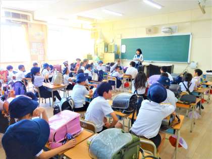 5時間目は、全校で今年度最初の地域児童会と集団下校を行いました。