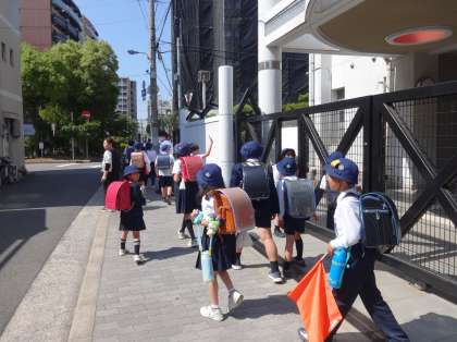 新年度が始まり1か月が過ぎた中で、集団登校時に再度確認しておきたいこと、気がついたこと、気をつけたいことなどを、担当の先生と一緒に確認しました。