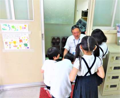 2年生は生活科の学習で、校長先生や教頭先生、事務の先生たちにインタビューに来ました。