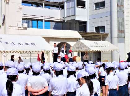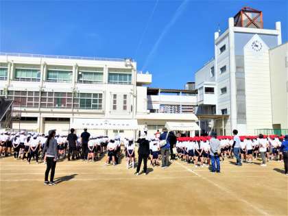 1時間目に、運動会に向けて全体練習2回目を行いました。