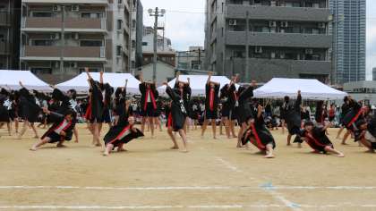 5年生は、一人ひとりが選んだ一文字を背中に刻んだ世界で一つの法被を着て、キレのあるソーランを披露しました。