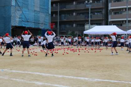 今年度は豊崎小学校創立150周年ということもあり、運動会のめあては「150%の努力と友情で運動会を楽しもう!」でした。