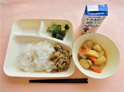 給食では、今日のようにご飯の添えとして使用する以外にも、みそ汁の実としても使用しています。