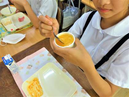 今日も暑さの厳しい1日でしたが、そんな日にぴったりのみかんゼリーは子どもたちから歓声があがる格別な美味しさでした。