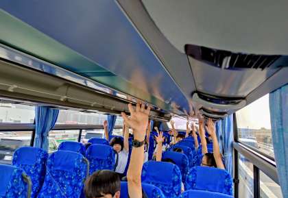 バスレクが始まっています。係の人の名司会で盛り上がっています!