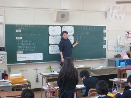 2月25日(木)に4年生算数の公開授業が行われました。今回のめあては「帯分数を仮分数になおす方法を考えよう」です。
