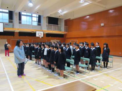 本日5年生は6年生と合同で卒業式の練習を講堂で行いました。本校では在校生で当日、式に出席できるのは5年生だけです。なので、5年生は在校生の代表として卒業式に関わる大切な役割となります。今日は「歌」と「呼びかけ」の練習でした。5年生の頑張りで6年生にとって思い出深い卒業式になるといいですね。5年生がんばれ!