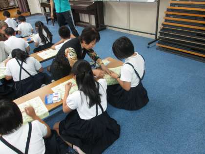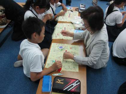 6月7日(火)に毎年恒例の、地域のご婦人方によるボタン付けの授業(家庭科)が行われました。今年も10名以上の方が講師として参加してくださいました。本当にありがとうございます。地域の方ひとりに児童2〜3人という環境で、ていねいにボタン付けを教わることができ、5年生も大喜びでした。ボタン付けが上手になっただけでなく、地域の方々とのとてもいい思い出が出来ました。